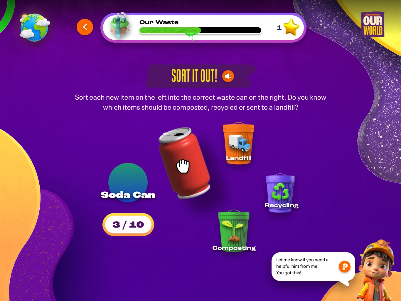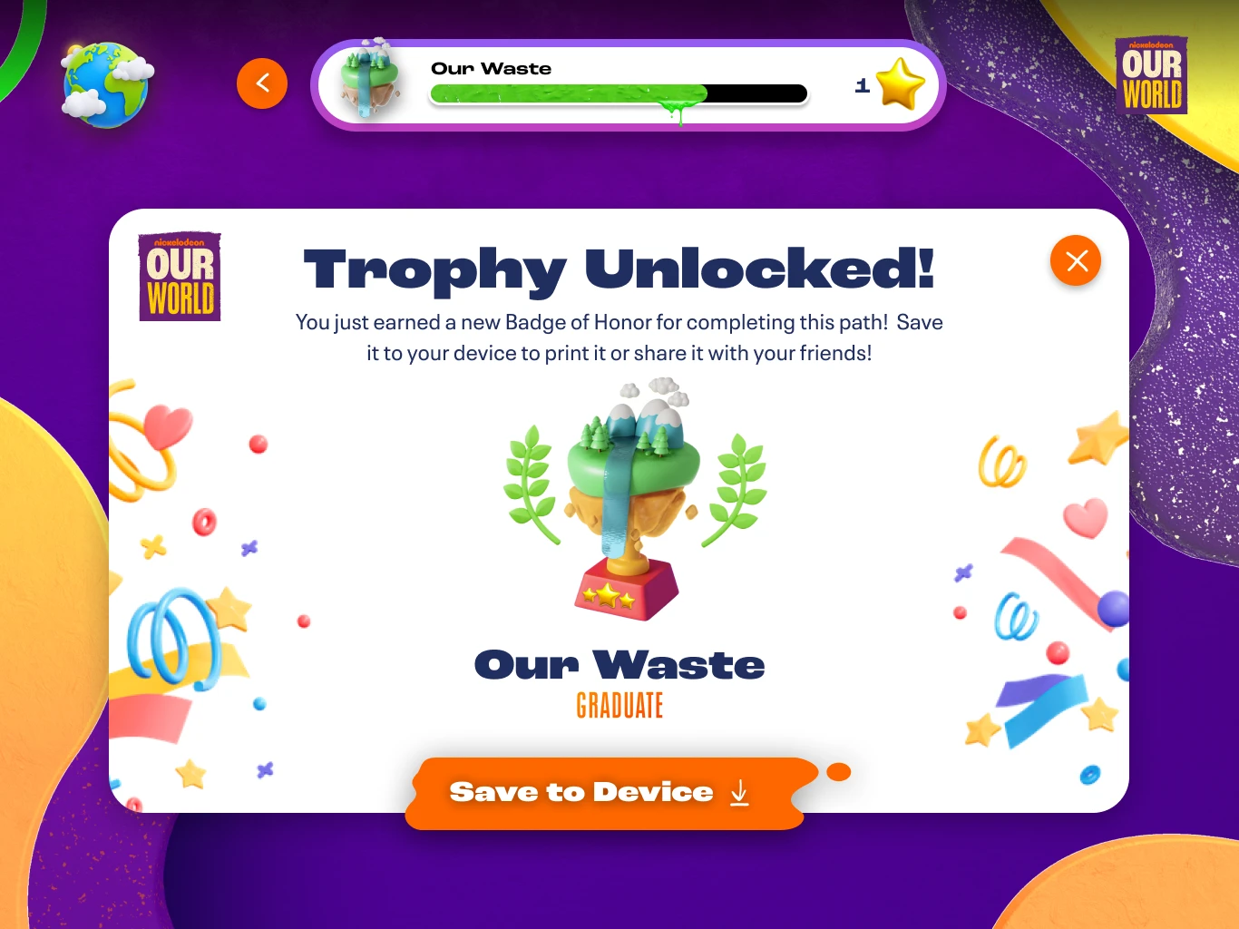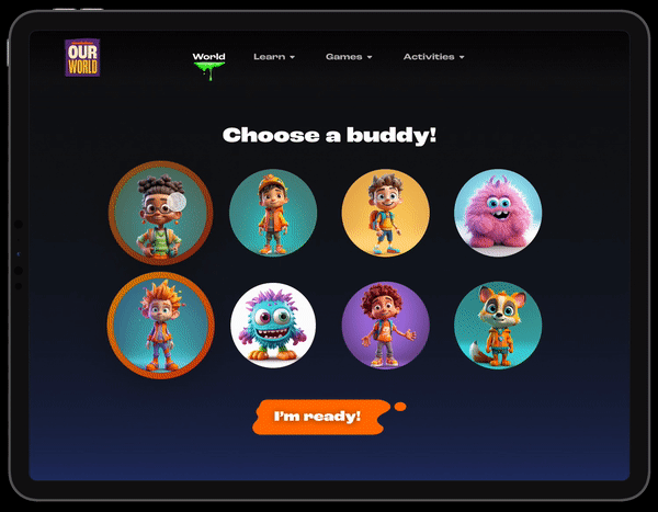 Nickelodeon came back with research stating that 2/3 of kids don’t believe they can make a difference in the world. It is our job to create an experience that can help educate and get kids to understand they can. Key topics to cover are food instability, global warming, mental health, and bullying. The experience needs to be fun, interactive, educational, COPPA compliant and accessible on all fronts. All of this needed to fall under the Our World umbrella at Nickelodeon.